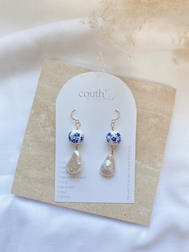 last summer collection(pre AW) "Nina"【ピアス/イヤリング】 ◆14KGF使用 ◆天然カウリシェル ◆セラミックビーズ フランスの女の子の名前で意味は「夢」 器のような模様がどこか懐かしさを感じさせる、海外チックなアクセサリー。 ◎金属部分はすべて14KGFを使用しております。 ◎送料は無料です。クリックポストにて発送いたします。 ◎ハンドメイド作品のため、衝撃には弱いです。破損など怪我の原因となりますので、ご使用の際は強い力をかけないようご注意くださいませ。 ◎天然石を使用している為、天然石の形にわずかな違いがある場合がございます。ご了承くださいませ。 ◎商品とは別添えで写真のアクセサリー保管ケースをお付けしております。(goods.necklace charmを除く)