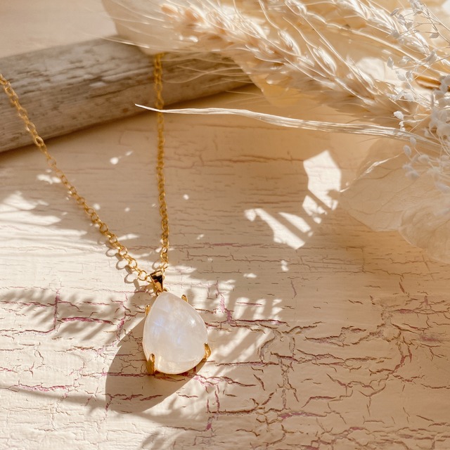 レインボームーンストーンネックレス(14KGF) "Muse"(ミューズ) ◆14KGFチェーン ◆ペンダント素材Silver925(18KGP加工) ◆レインボームーンストーン(石言葉:芯の強さ) ◆約50cm 一見ホワイトに見える石ですが、光によって七色に輝くレインボームーンストーン。角度によって青みがかって見えます✨シンプルだからとても着けやすいアイテムです。ロングチェーンで、厚手の服の上からでも着けられます◎ ◎送料は無料です。ゆうパケットポストにて発送いたします。 ◎ハンドメイド作品のため、衝撃には弱いです。破損など怪我の原因となりますので、ご使用の際は強い力をかけないようご注意くださいませ。 ◎天然素材を使用しているため、模様や形が異なる場合がございます。
