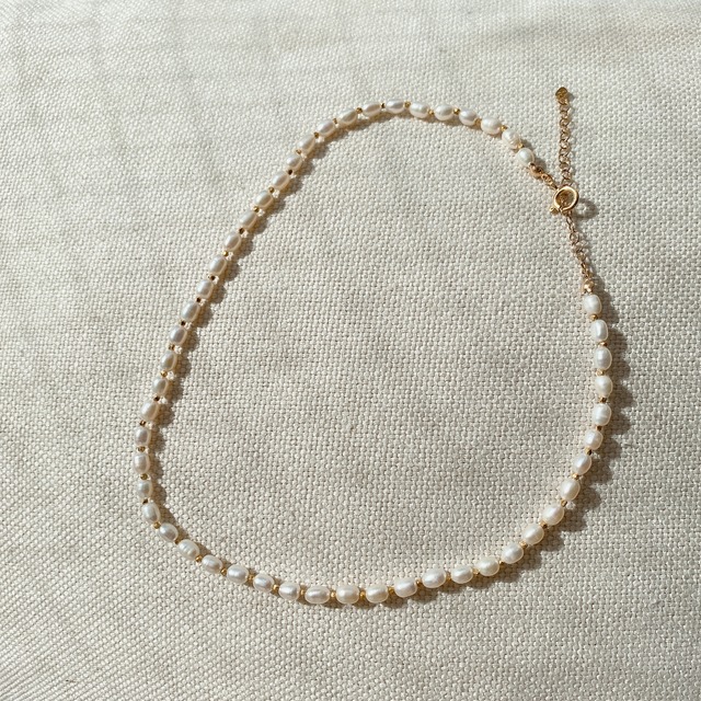 淡水パールネックレス(14KGF) "Bonnie"(ボニー) ◆All14KGF使用 ◆約42cm ◆淡水パール(石言葉:癒し 輝き) ◆ビーズ用糸(伸縮性なし) 淡水パールをふんだんに使用したネックレス。シンプルだからずっと使えるアイテムです。 金属はすべて14KGFを使用しており、錆なく金属アレルギーの方でもご利用いただけます♡ ◎送料は無料です。ゆうパケットポストにて発送いたします。 ◎ハンドメイド作品のため、衝撃には弱いです。破損など怪我の原因となりますので、ご使用の際は強い力をかけないようご注意くださいませ。 ◎天然素材を使用しているため、模様や形が異なる場合がございます。