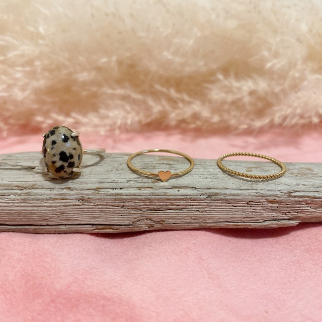 Great value 3Pリングセット Set-1 ◆Padita(silver925.18KGPコーティング)(ダルメシアンジャスパー)【7-11号のフリーサイズ】 ◆Aloha(14KGF)【9.12.14.16号】 ◆Lulu (14KGF)【9.12.14.16号】 ◆単品購入より4500円お得! 単品購入よりも4500円安い、かなりお買い得な3点セット。一緒につけることで可愛さマシマシのアイテムたちです♡ ◎送料は無料です。ゆうパケットポストにて発送いたします。 ◎ハンドメイド作品のため、衝撃に弱いです。破損など怪我の原因となりますので、ご使用の際は強い力をかけないようご注意くださいませ。 ◎天然素材を使用しているため、模様や形が異なる場合がございます。