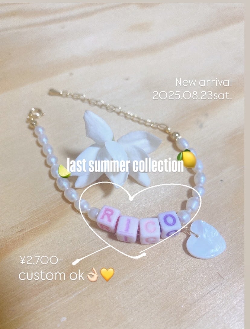 ※アルファベットと一緒にハートシェルのカラーをホワイト、ピンク、グリーンからお選びくださいませ。