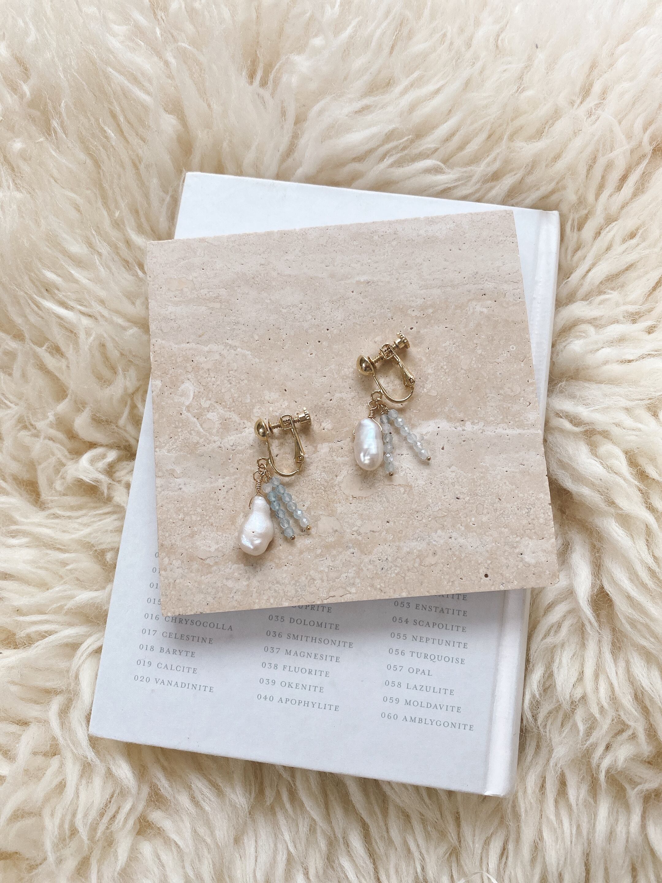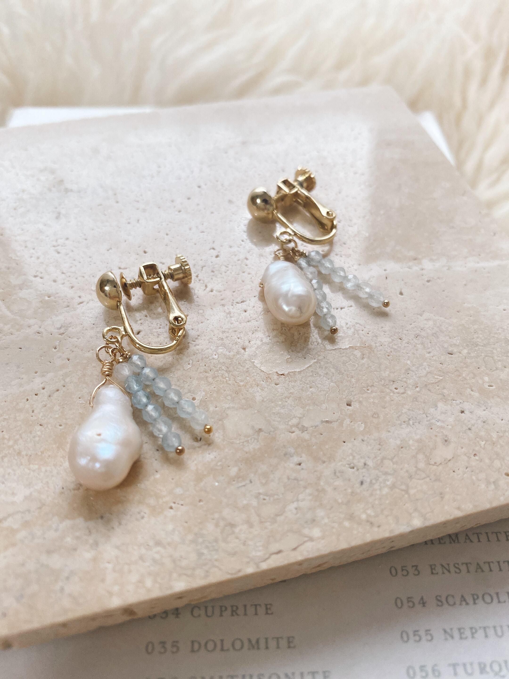 ◆淡水パールとアクアマリンのピアス(イヤリング変更可)