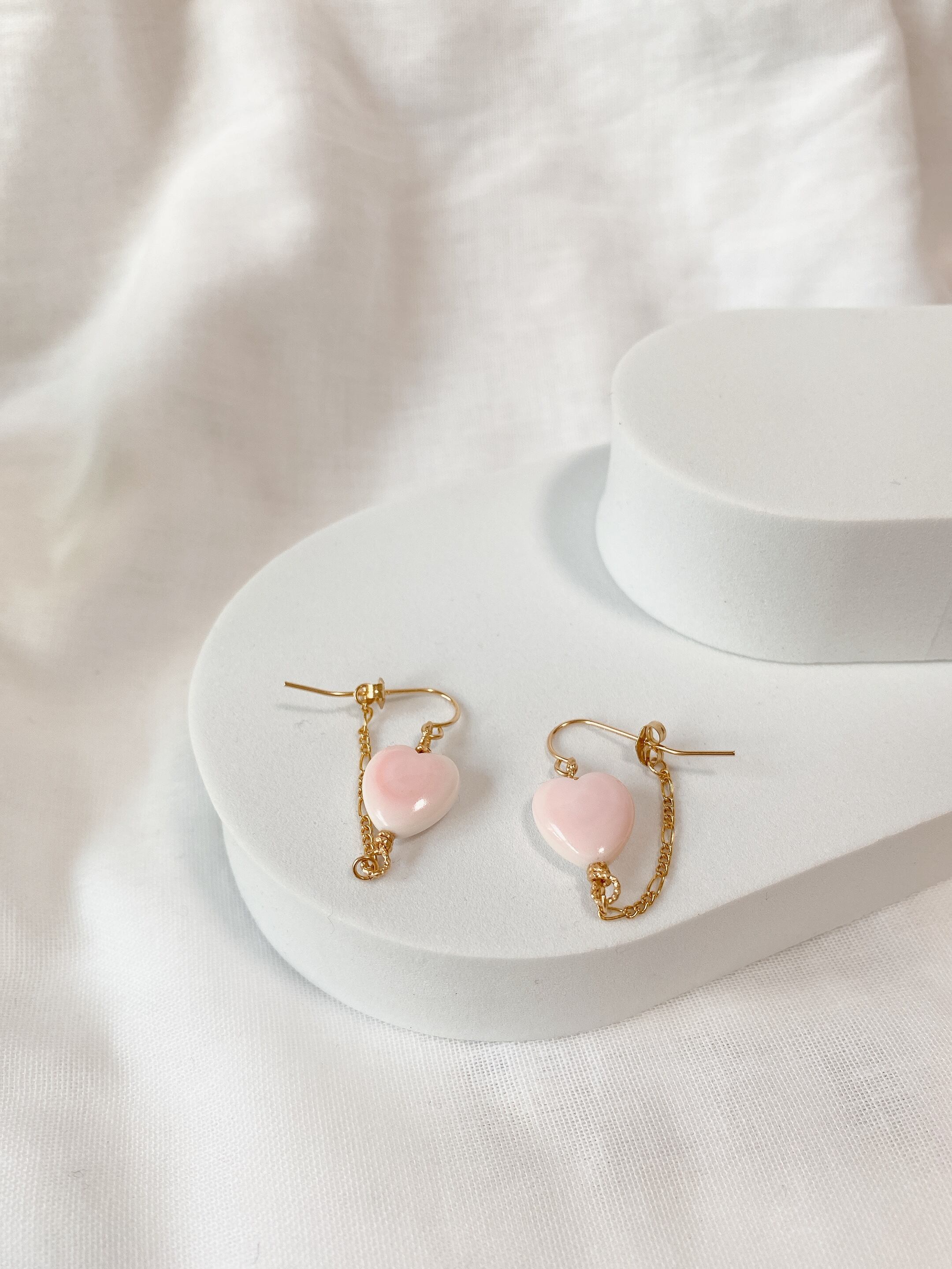 血色感をもたらすクイーンコンクシェルの赤みとゴールドチェーンの組み合わせで、耳元から大人可愛く。こちらは春限定アイテムです。