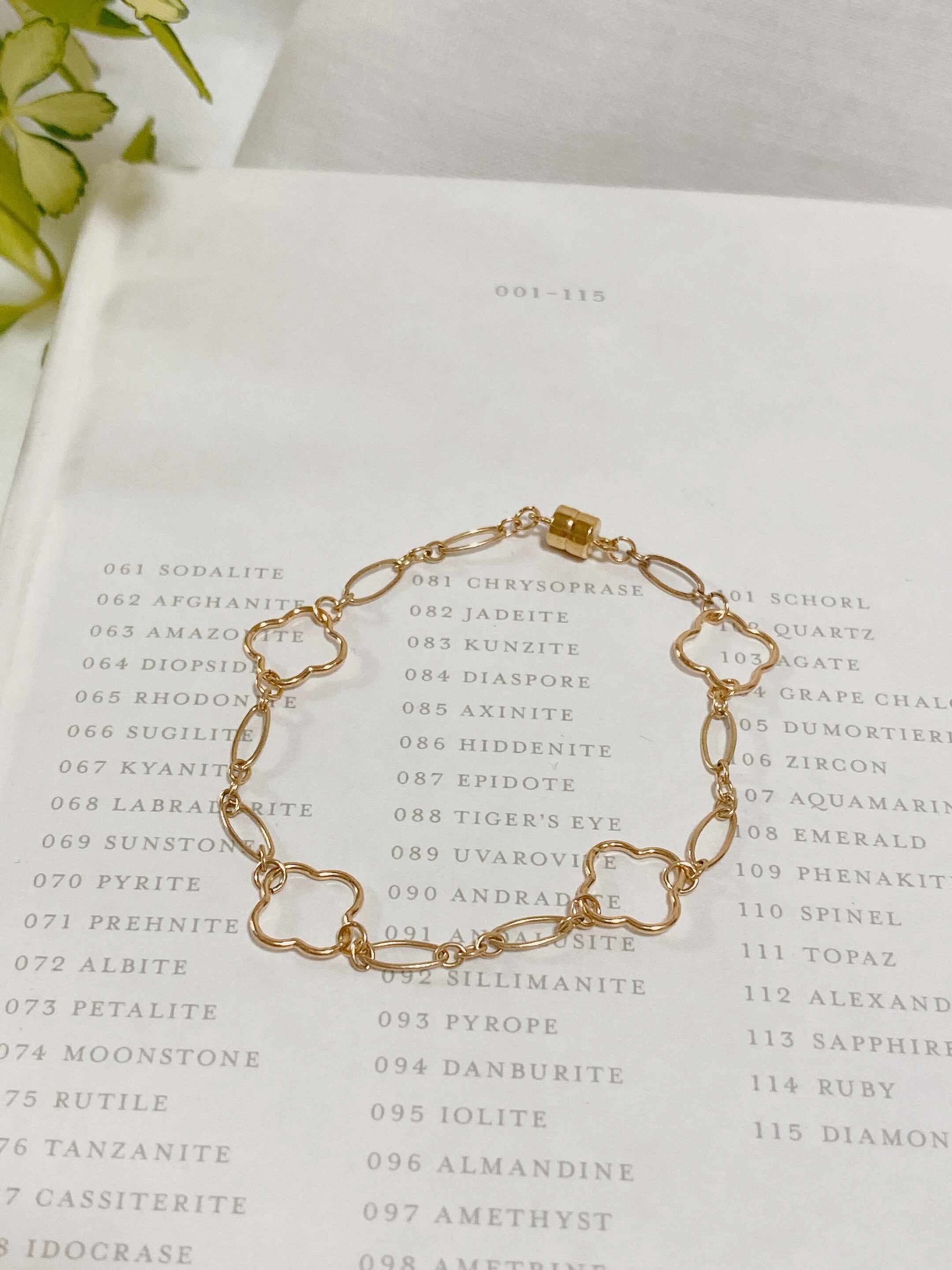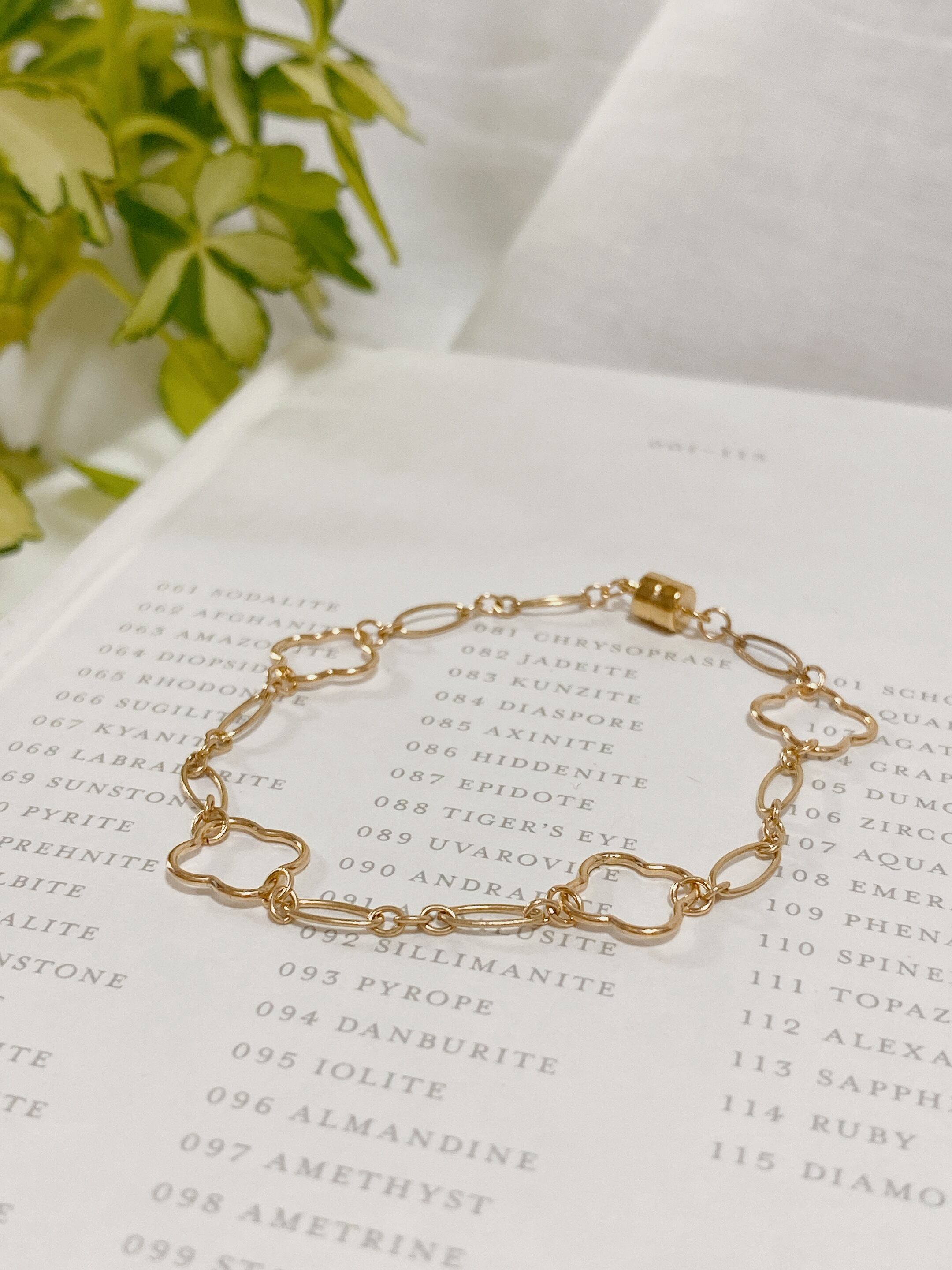 手元を見るたび気分が上がる、ALL14KGFの可愛らしいブレスレット。フラワーシェイプパーツは海外からお取り寄せした珍しい14KGFチャームとなっております✨