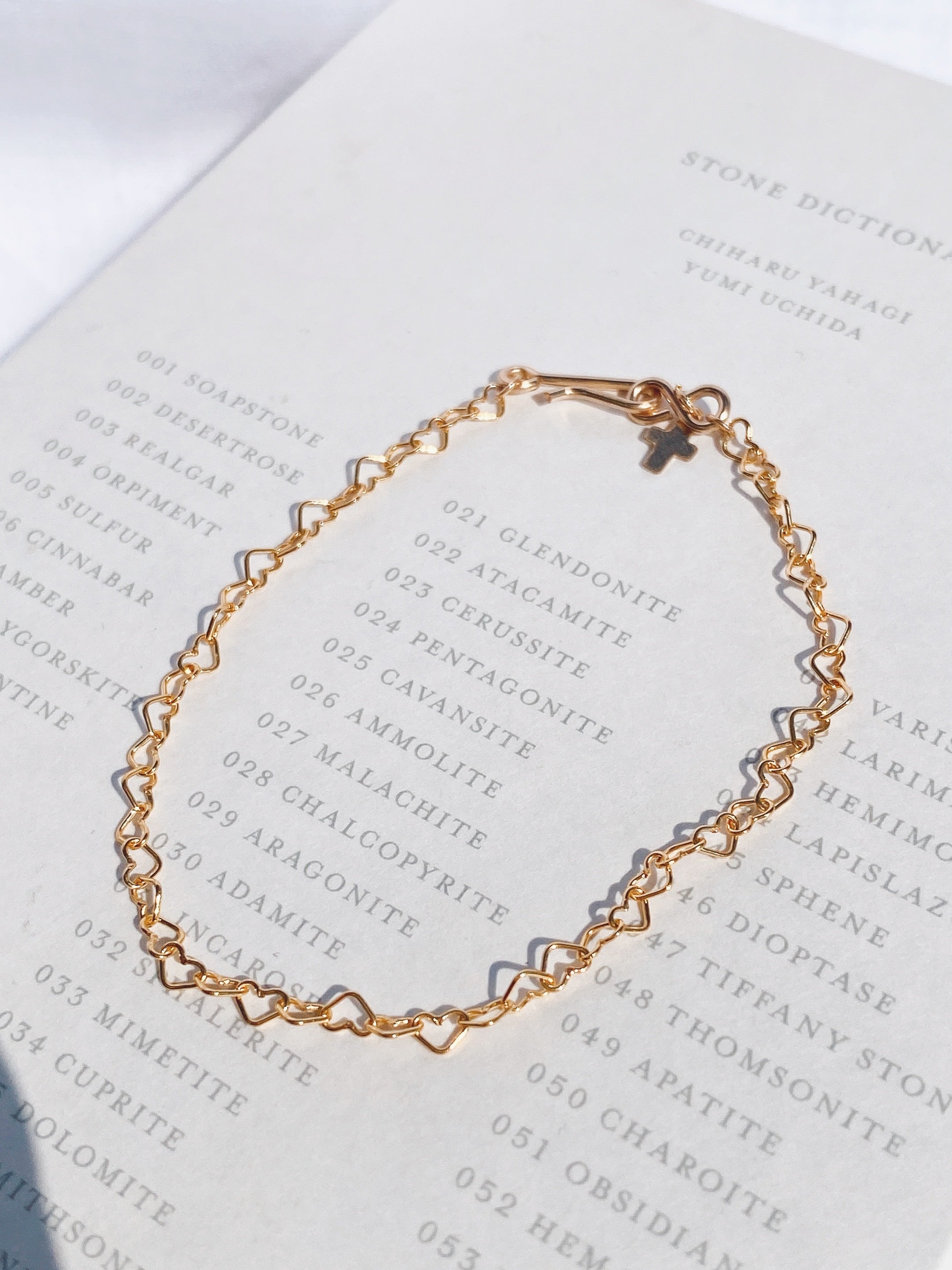 パッと見シンプルで大人っぽく、よく見てみるとラブリーなチェーン。ALL14KGFの可愛らしいブレスレットです。フックで取り外しやすくも外れにくいのが嬉しいポイント。