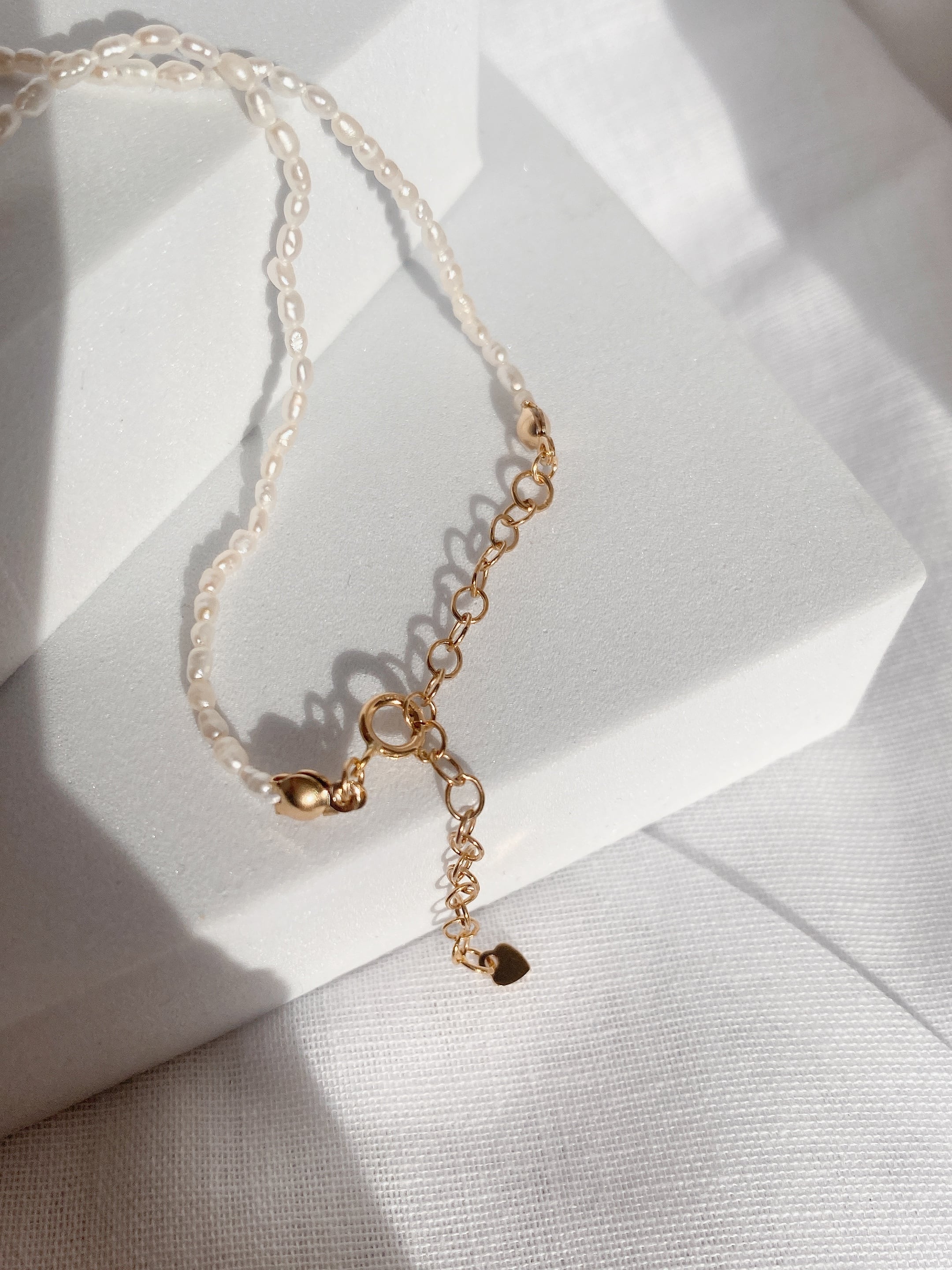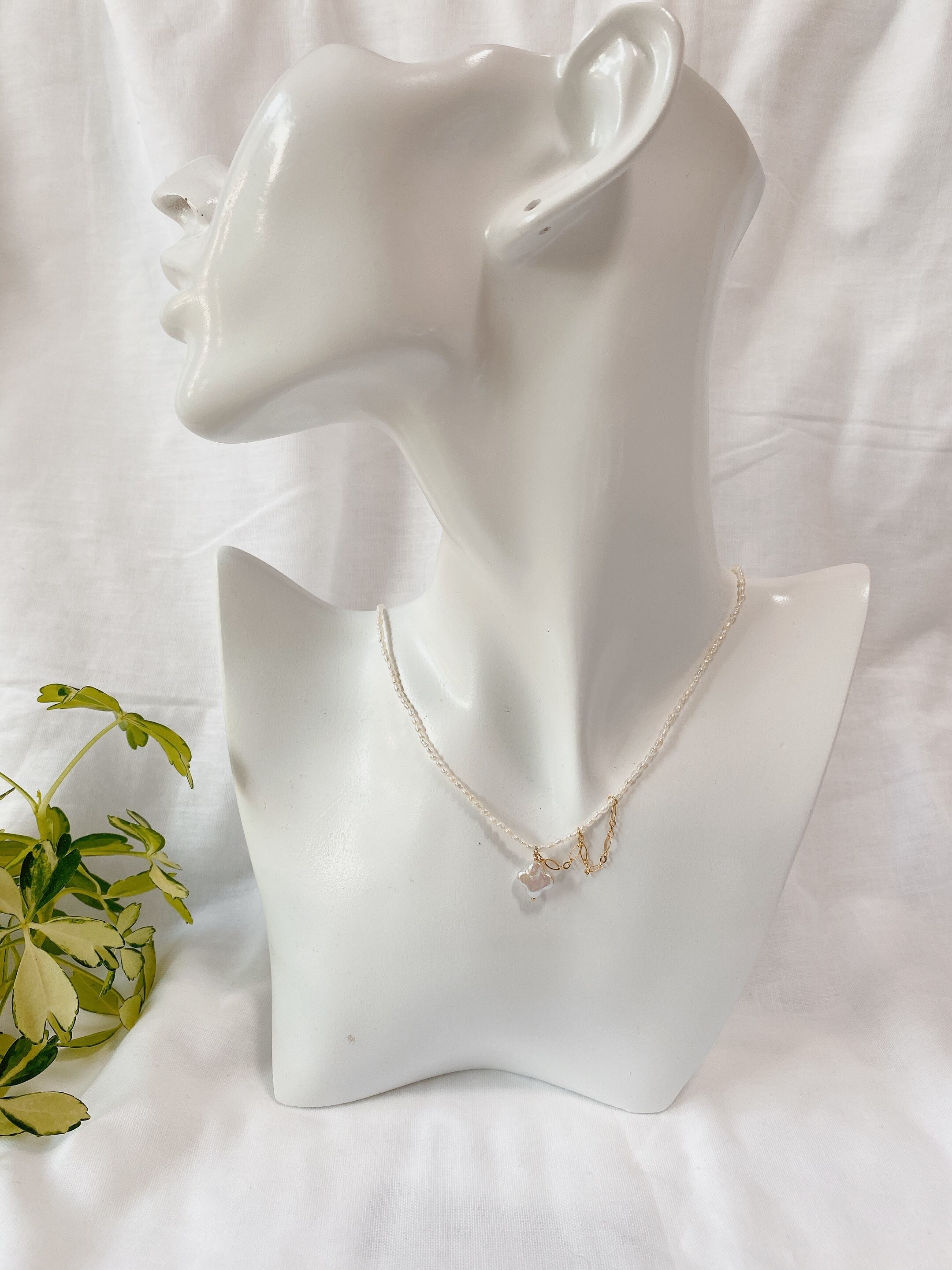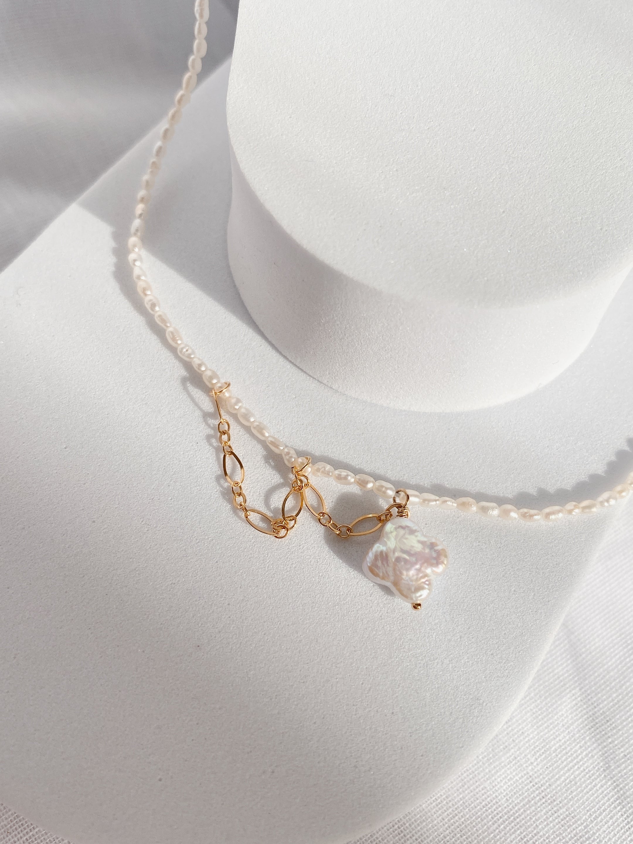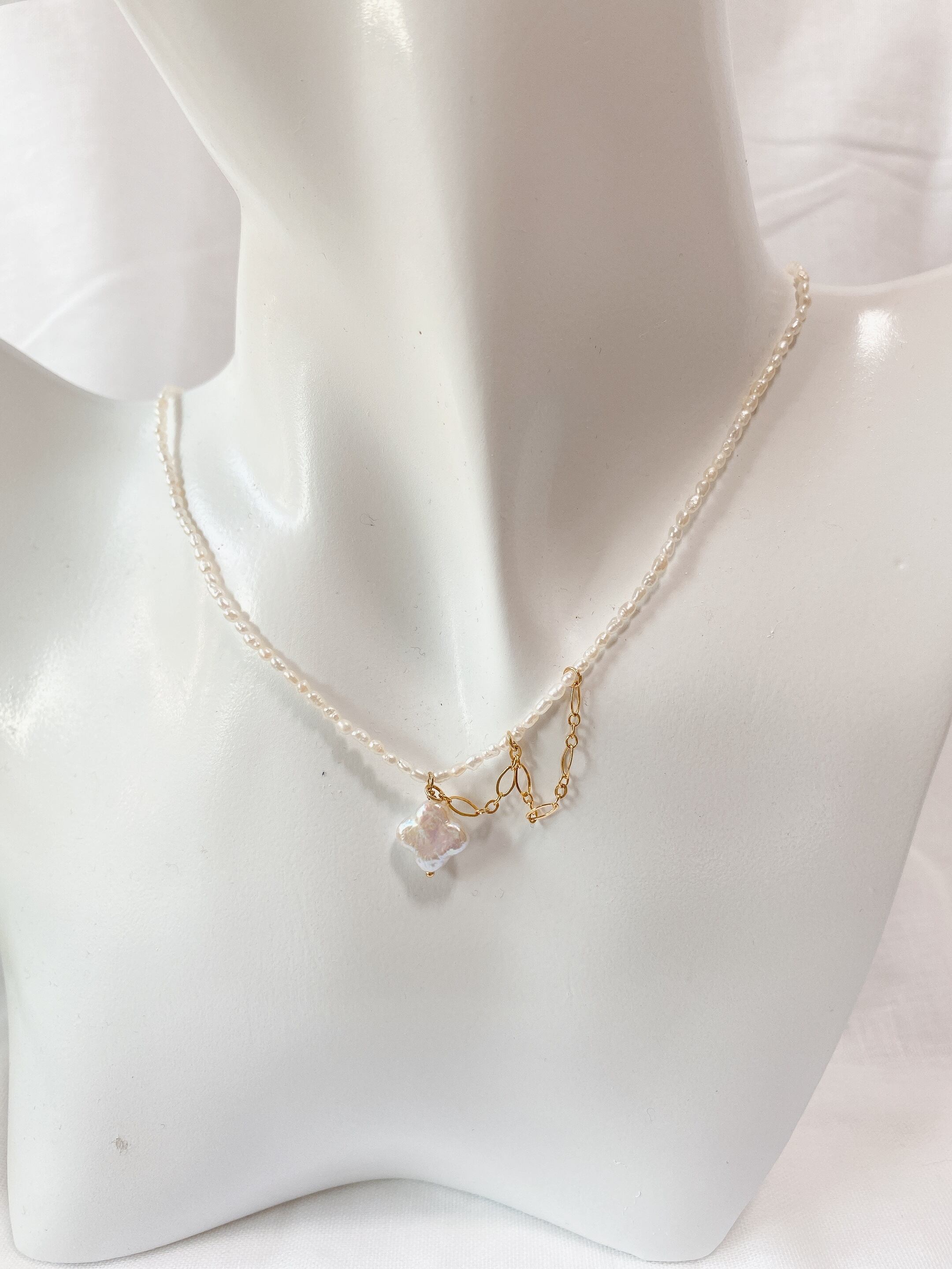 首元を華やかに魅せる細かな淡水パールが美しいネックレス。