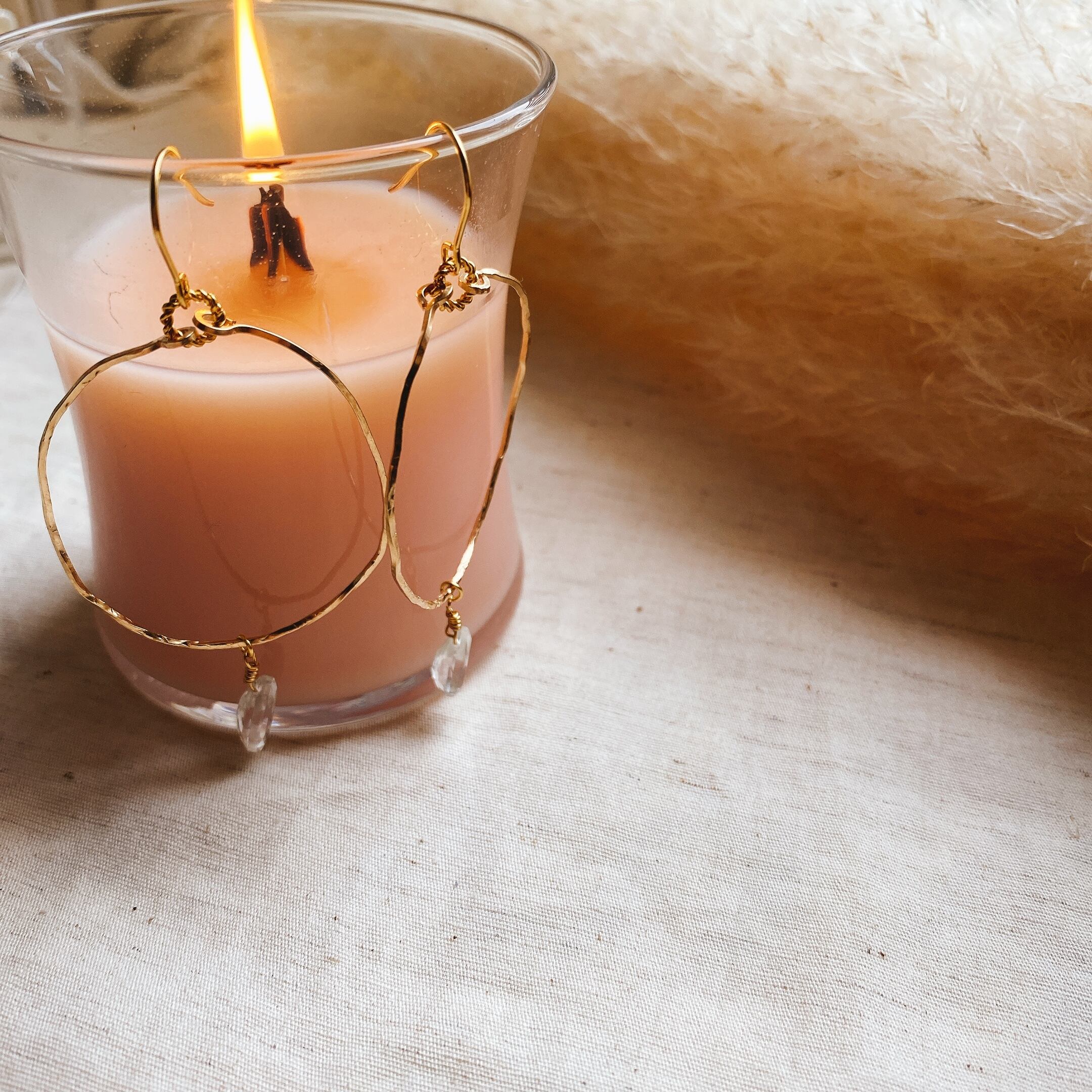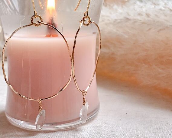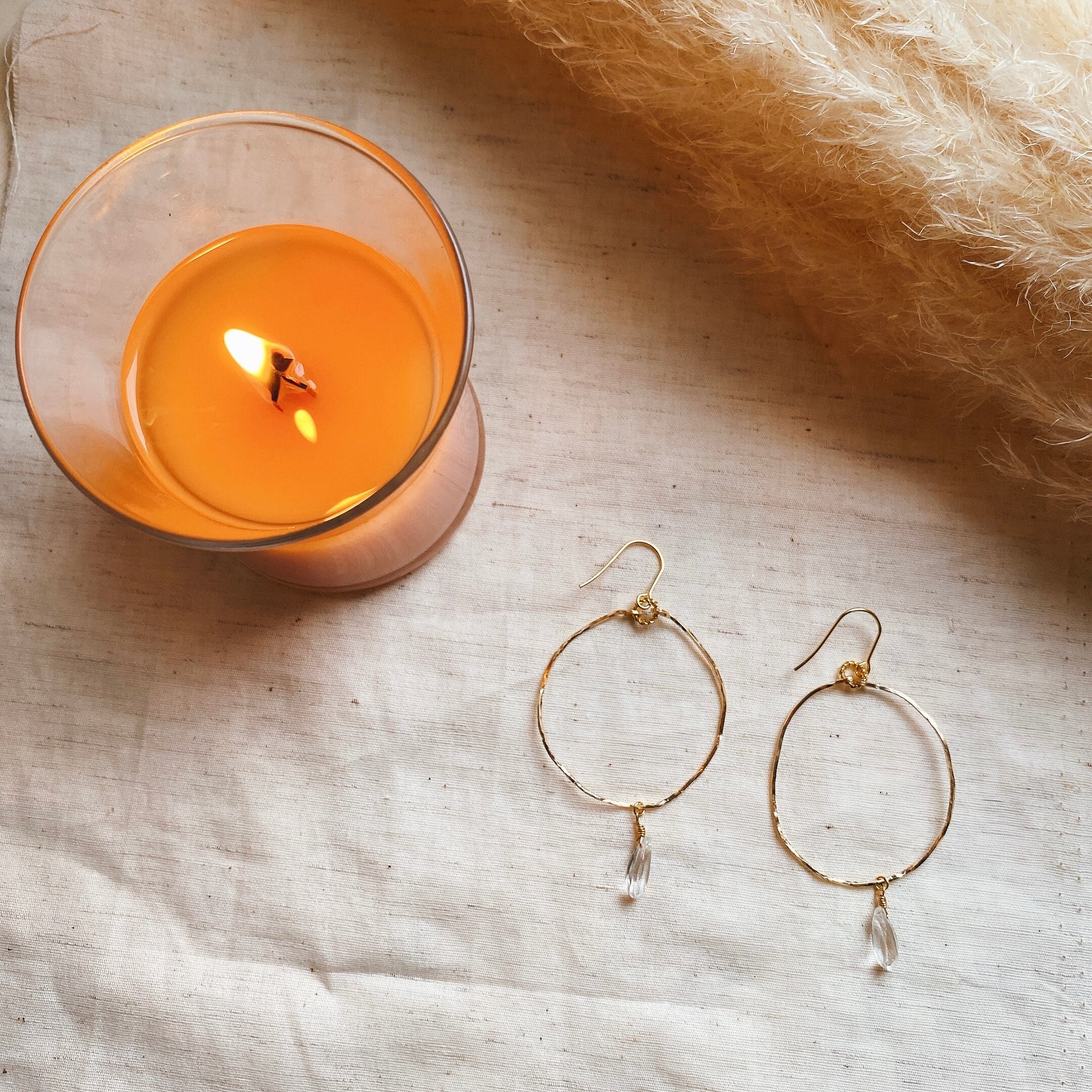 14KGFワイヤーを使用した豪華なアイテムです✨ワイヤーには時間をかけてひとつひとつ手でテクスチャーを入れています。加工することにより、耳元で揺れた時によりキラキラと輝いて見えるんです☺︎