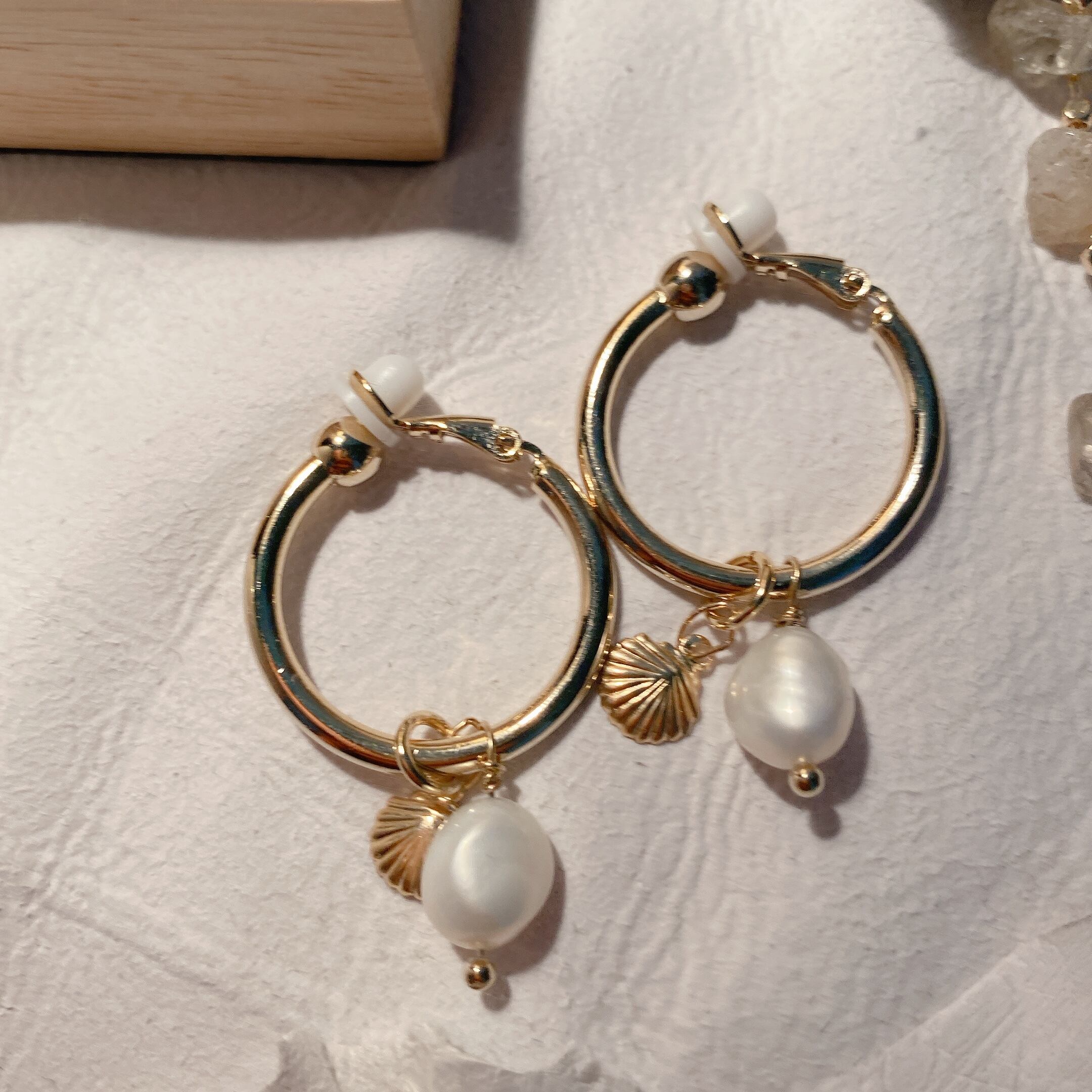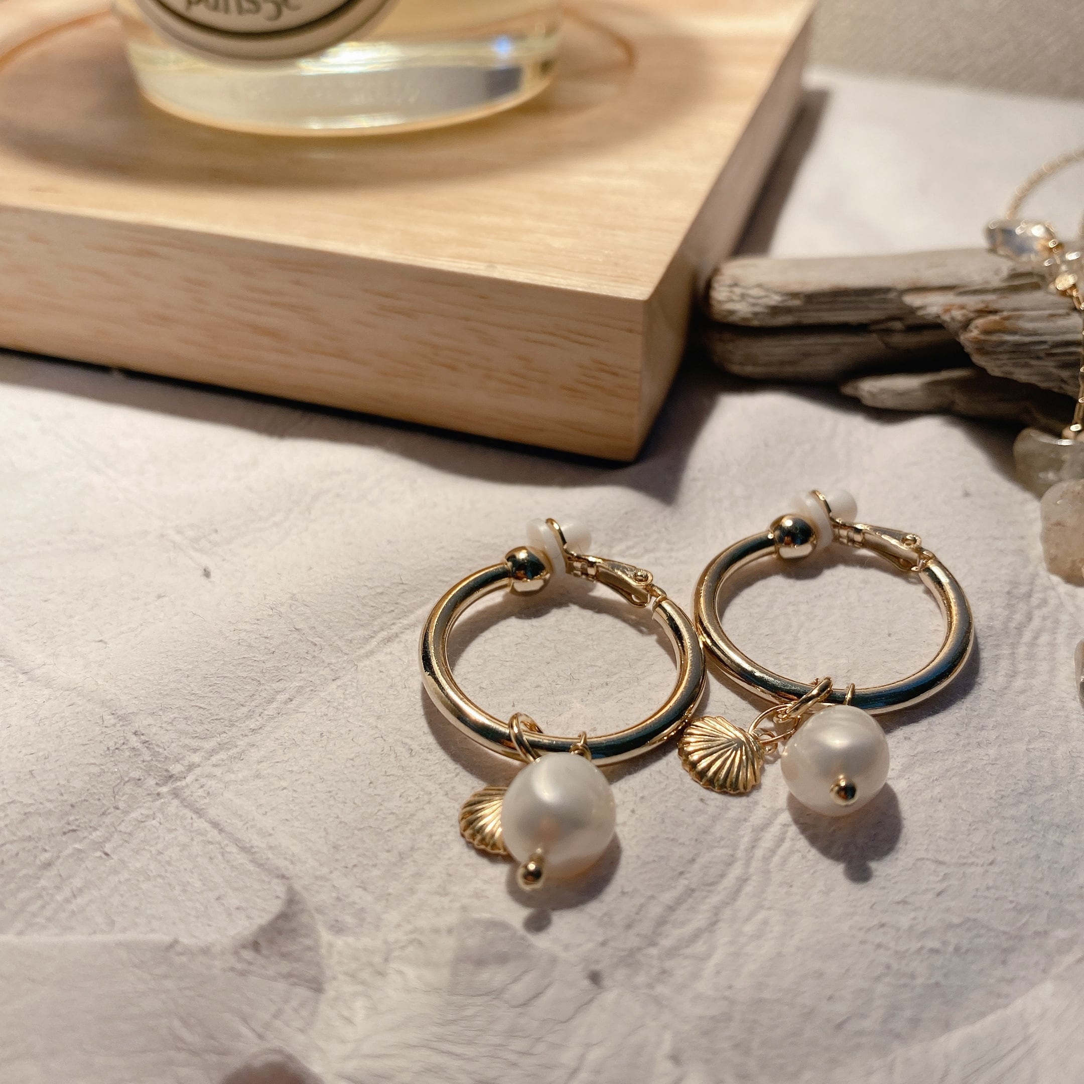 シェル&淡水パールフープピアス(イヤリング)