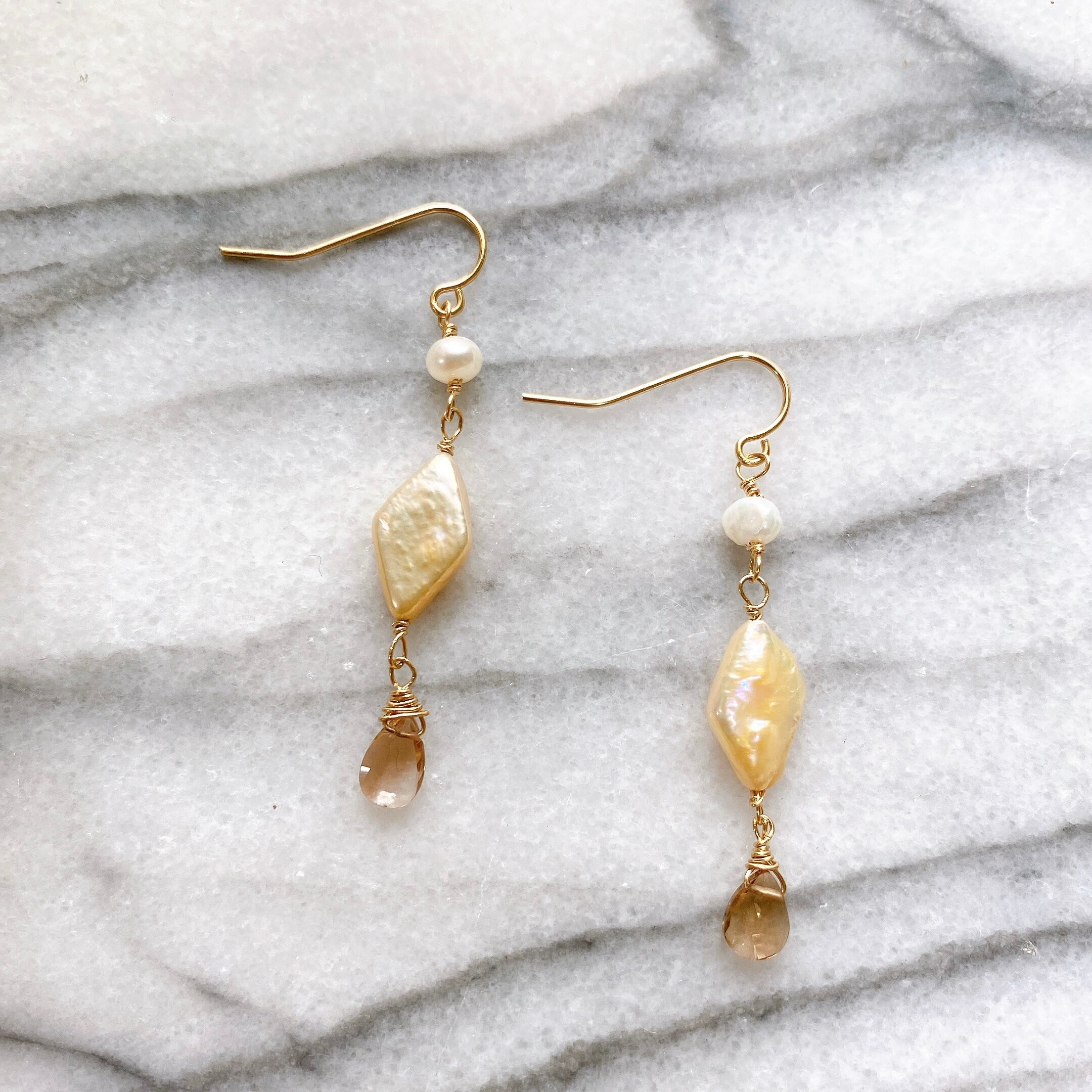 上品な色味のブラウントパーズがポイントのピアス。ゆらゆら揺れる可愛いアイテムです✨