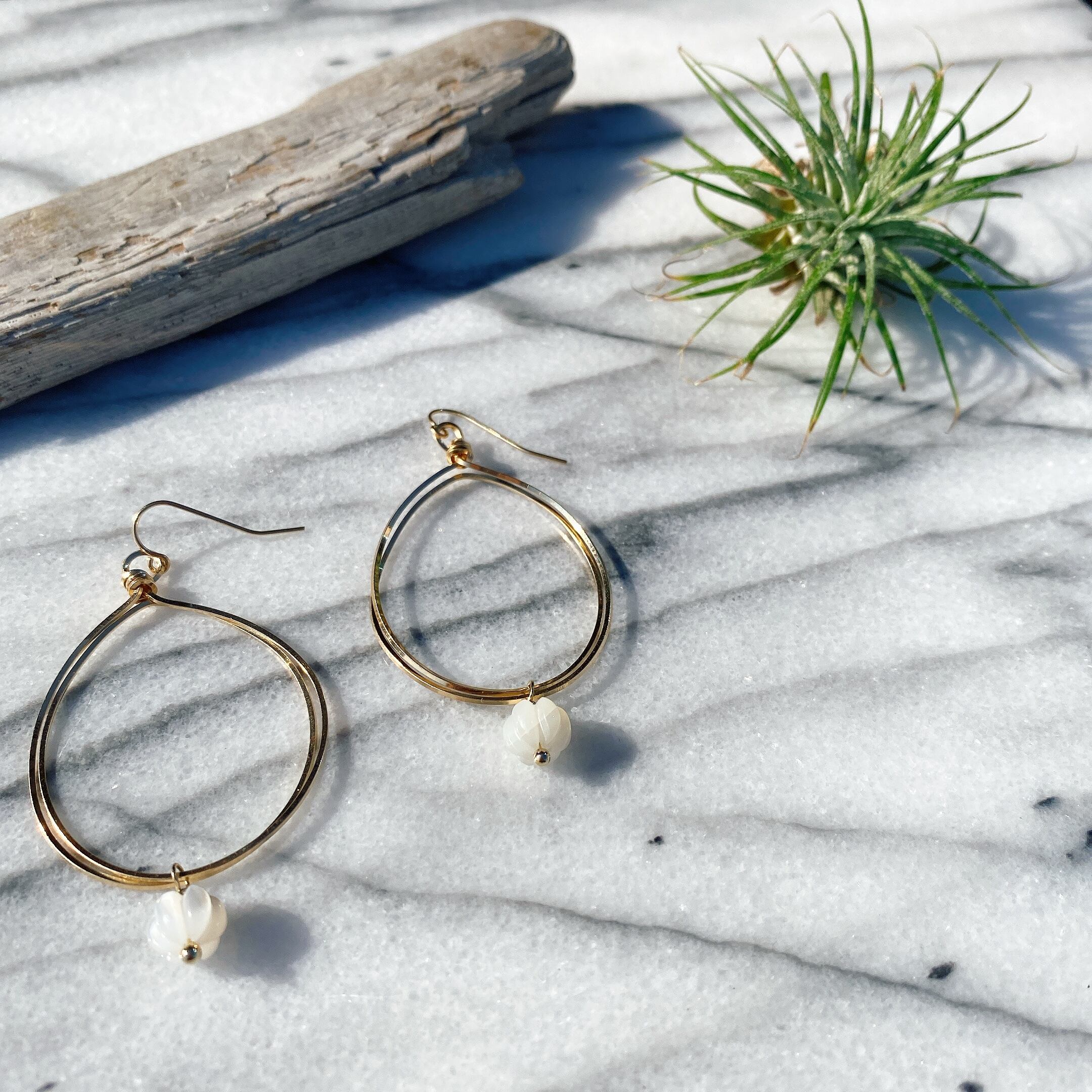 ホワイトシェルダブルフープピアス(イヤリング)