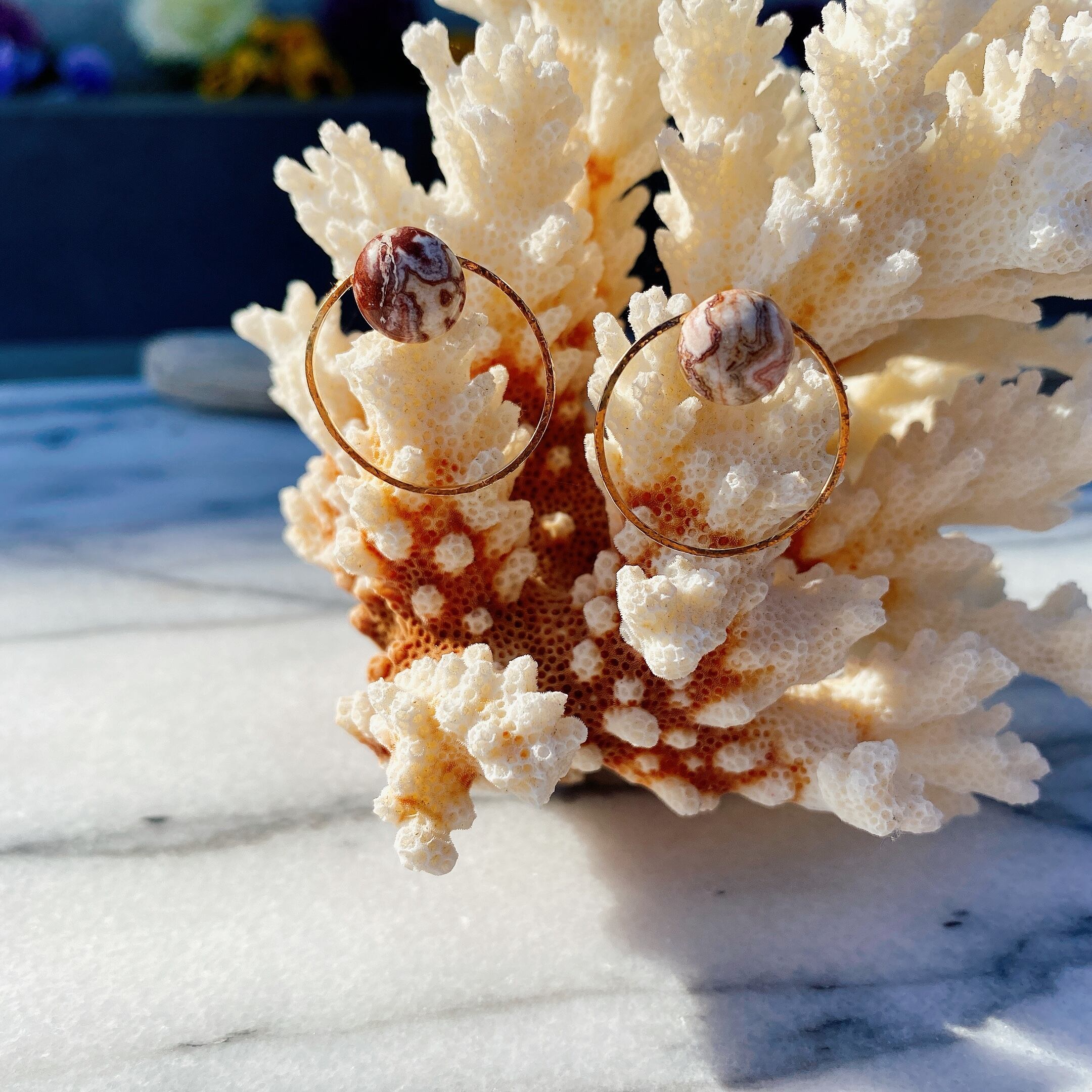 メキシカンアゲートテクスチャーフープピアス(イヤリング)
